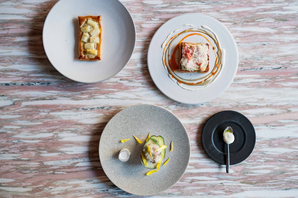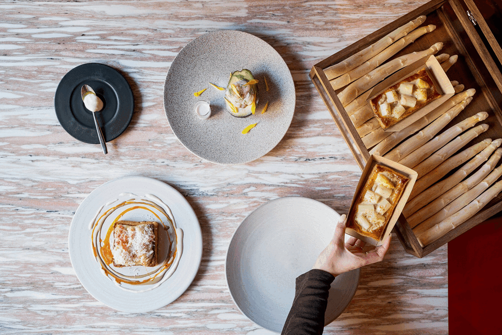 フランス産ホワイトアスパラガスとホタテのタルティーヌ